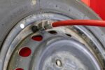黒いホースの先端をタイヤにまっすぐ差し込みます。